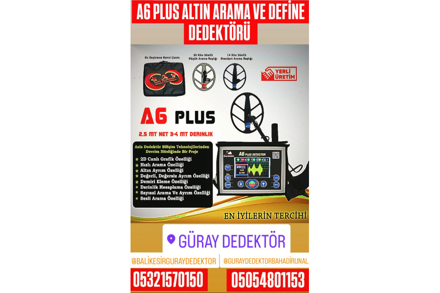♥️A6 Plus altın define arama dedektörü. A6 Plus fiyatı, özellikleri, kalitesi ile derinlerdeki defineleri 7 khz büyük başlık ile yer altındaki altın ve defineleri, oda mezarları, tünel ve kuyuları slow arama modu sayesinde 2D Canlı grafikle 2,5 metre net 3 metre maksimum derinlere kadar tahmini tespitler yapabilmektedir. A6 Plus tek altın para, takı, gümüş bronz sikke aramalarında sayısal rakamsal çalışma özelliği ve POİND seçeneği sunmaktadır.