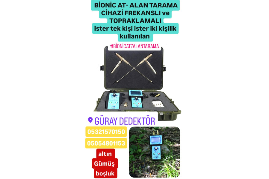 ♥️ Bionic A-T-7 Alan tarama cihazı, boşluk ve altın bulma özelliğine sahiptir. Bionic A-T-7; 100mt ile 400mt uzaklıktaki toprak altı ve kaya içlerinde yapılmış olan oda mezarları bunlarının içinde bulunan altın ve bronz objeleri tespit edebilme özelliğine sahiptir