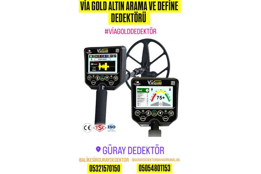 ♥️Via Gold altın arama dedektörü fiyatı ve özellikleri sayesinde en derindeki defineyi ve gömülü hazineleri, kaya, toprak içerisinde derinlik kaybına uğramadan altın, gümüş, bronz, tunç türü metalleri, heykel, külçe, tek para, derin gömülü hazineleri ve yeraltındaki oda mezarları, tünelleri 30 santim ile 2,5 metre bulabilme garantisi vardır. Via Gold altın dedektörü fiyatı dışında otomatik sistemle her türlü madenli topraklarca çalışma seçenekleri sunmaktadır. Via Gold define dedektörü Slow arama modu olan 2D canlı grafik arama modunda kaya içindeki gömülü hazine ve defineleri garantili bulabilmekte ve altın, gümüş, bakır, bronz ve değersiz metallerin ayrımını %70 yapmaktadır